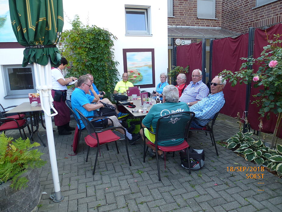Am zweiten Tag ging es nach einem reichhaltigem Frühstück auf den Rundkurs um Soest. Ab jetzt führte Rolf die Truppe. In Herzfeld kehrte man bei großer Hitze in einem Kaffee ein. Zurück ging es dann über Sassendorf, wo noch ein Stopp in der "Blaubeere" gemacht wurde.
