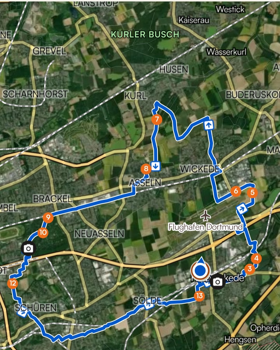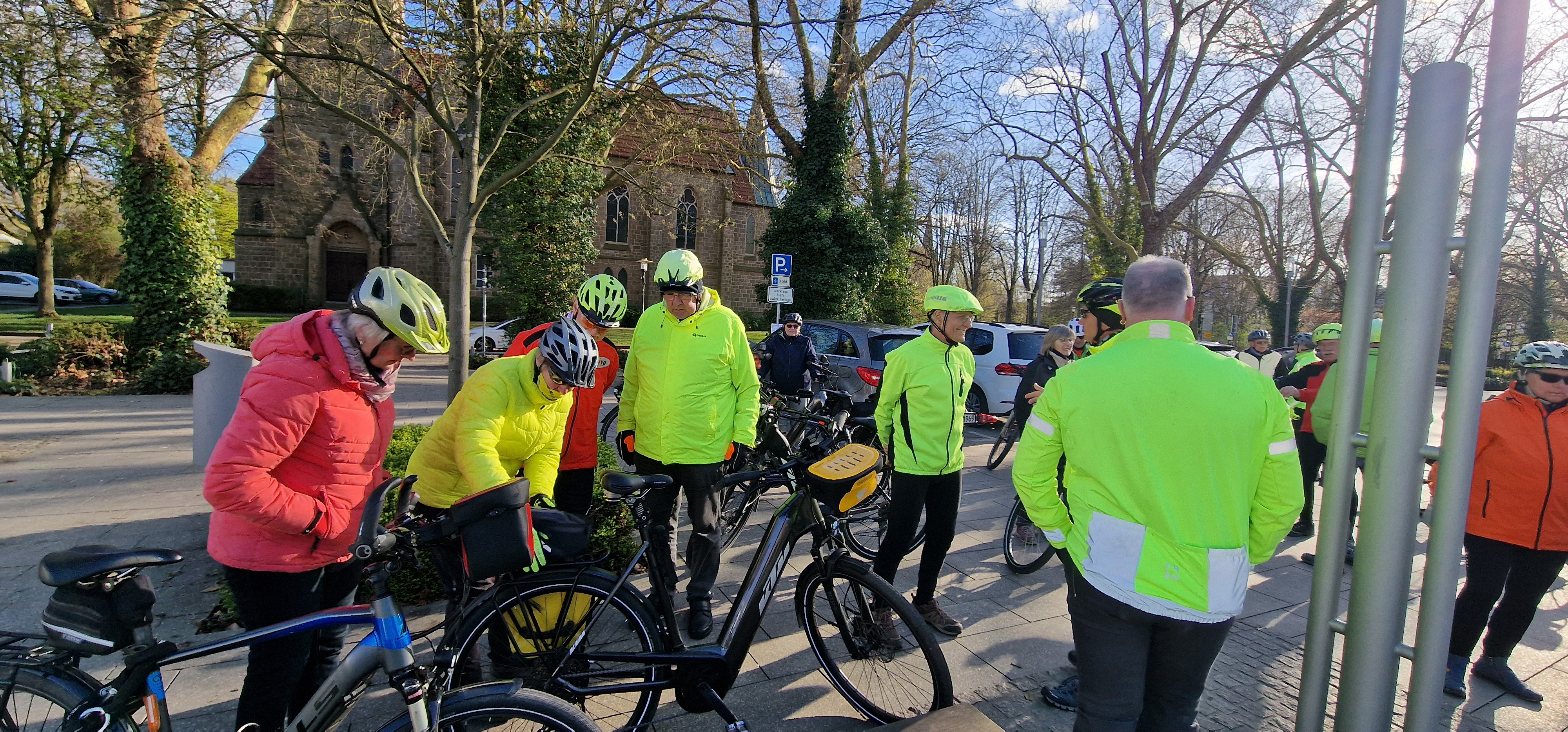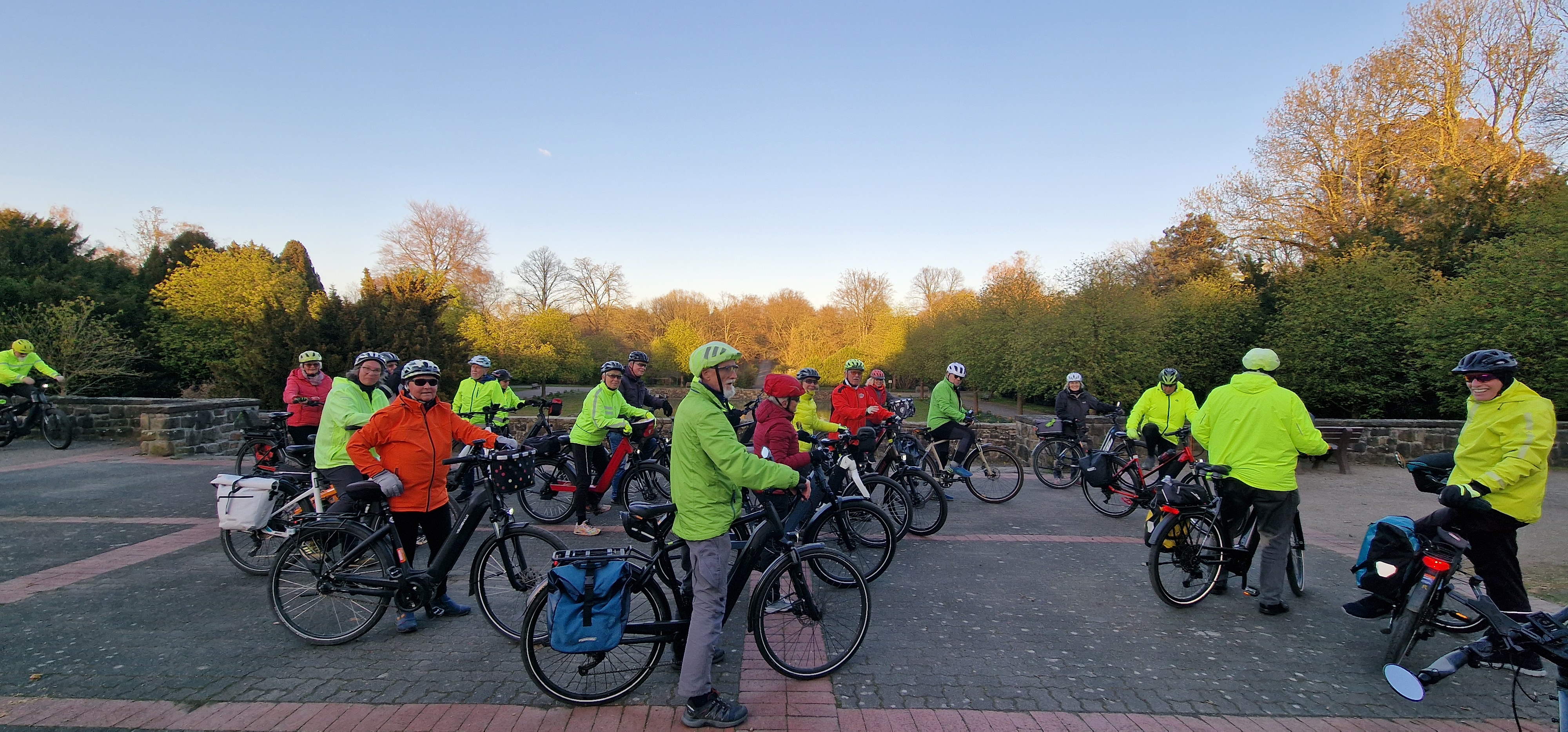 Am Mittwoch, dem 1. April 2026, startete die erste ADFC- Feierabendtour 2026 pünktlich um 18.00 Uhr am Markt. Zur Tour, die Rainer Wortmann geplant hat, fanden sich 24 Radler*innen ein. Das Wetter war herrlich, und so ging es fröhlich los Richtung Wickede, wobei wir am Flughafen vorbeikamen.
