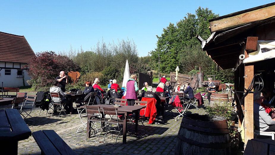 Um 10:30 startete Mechthild mit 17 Personen bei wunderbaren Wetter zu einer fast achtzig Kilometer langen Sonntagstour. Es ging über den Alleenradweg Richtung Hamm. Da die Gruppe zu schnell war und der Brauhof erst um vierzehn Uhr öffnete schob Mechthild eine interessante Besichtigung bei dem Künstler der „Otmar Alt Stiftung“ ein. Im Brauhof gab es verschiedene Biersorten und heimische Gerichte. Danach ging es nach Howi zurück.