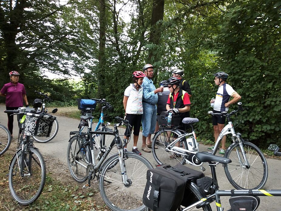Das Wetter war genau richtig zum Fahrradfahren, als Lothar Wolf um 18 Uhr die 15 köpfige Gruppe in Gang setzte. Es ging erst einmal Richtung Osten zum Stuckenberg. Wir überquerten die Feldstraße und fuhren nach Unna, über teils für viele unbekannte Wege. Bis zum Kortelbach gab es auch unbefestigte Wege, Lothars „Spezialgebiet". Zurück ging es dann durch Unnas Westen. Natürlich fehlte der Abschlusstrunk im Dorfkrug nicht.