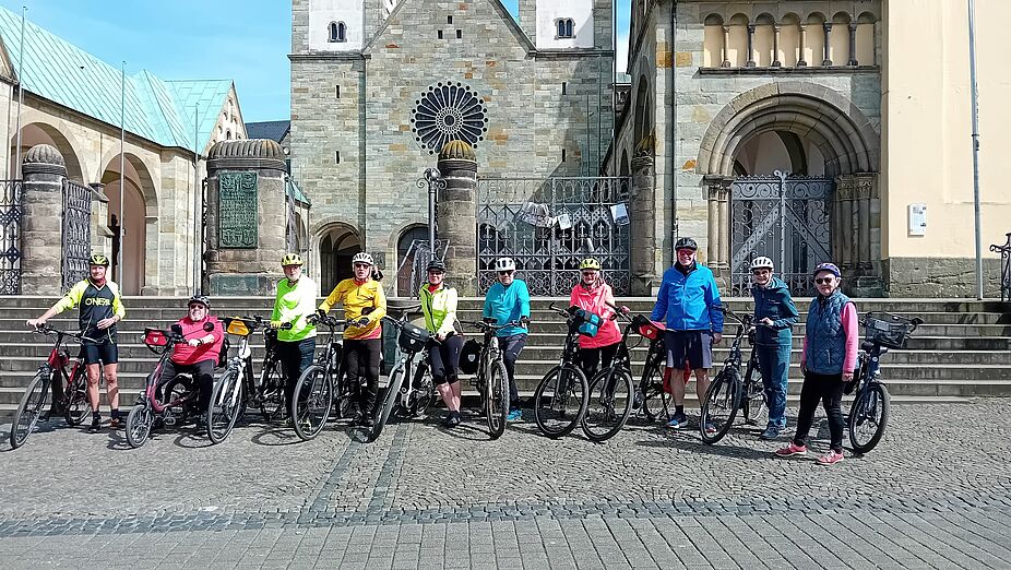 Das war mal eine tolle Fahrt bei super Wetter. Es ging um elf Uhr unter der Führung von Uli Lohenstein am Marktplatz los. Zehn Personen brachen auf um über Billmerich, Kessebüren, Mühlhausen nach Werl zu fahren. Die Fahrt lief reibungslos mit einigen lustigen Anekdoten ab. In Werl wurde die Konditorei Hemmer angesteuert. Man traute seinen Augen nicht über die große Auswahl an Kuchen und weiteren Leckereien. Rita Hofer und Uli einigten sich darauf, dass Rita den Heimweg leitete. Es ging erst einmal in den schönen Kurpark, in dem auch Fahrradfahrer fahren durften. Ein Höhepunkt war der Besuch von dem Gradierwerk, an dem wir frische Luft tanken konnten. Weiter ging es über schöne Feld- und Waldwege zum „Alleen Radweg“. Wie wir alle wissen einer unserer schönsten Radwege in der Region. Die ca. 60 km lange Tagesfahrt vom ADFC war wieder ein voller Erfolg. Der Abschluss der Fahrt wurde bei Herta und Uli mit einem Schluck Bier beendet.