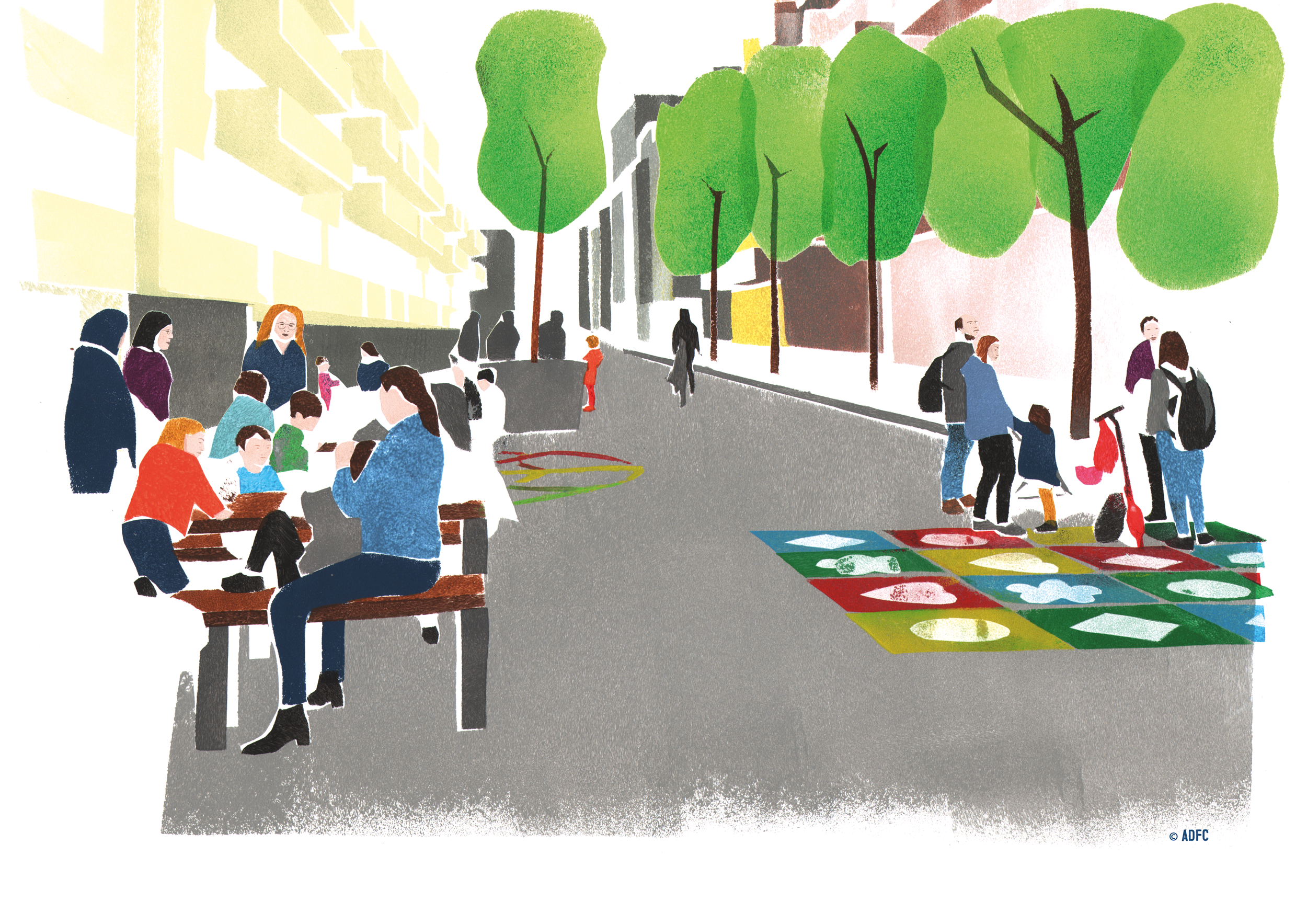 Vielfältige Maßnahmen zur Verkehrsberuhigung – etwa Tempo-30-Zonen, Durchfahrtsbeschränkungen, kleine Plätze mit Sitzgelegenheiten oder bauliche Aufwertungen – führen zu sichereren Straßen, geringeren Unfallzahlen, geringerer Lärmbelastung und einer attraktiveren öffentlichen Umgebung. Auch muss sich die Infrastruktur stärker an den Bedürfnissen der aktiven Mobilität orientieren. Breitere Gehwege sorgen für mehr Sicherheit und schaffen Aufenthaltsqualität. Innerhalb verkehrsberuhigter Quartiere entstehen schneller Nachbarschaftskontakte und gerade für Familien mit Kindern und ältere Menschen erhöht sich dadurch die Möglichkeit zur Teilhabe am städtischen Leben.